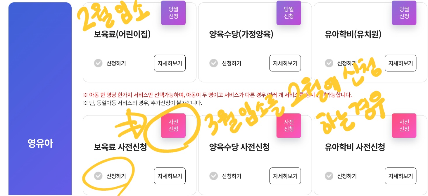 3월부터 어린이집을 보내는 경우 사전신청을 눌러주세요!