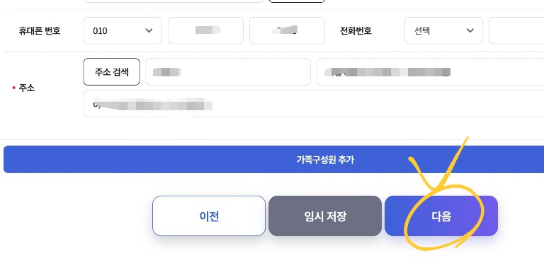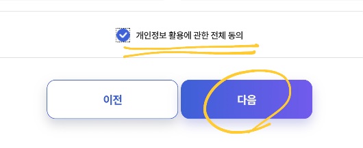 메뉴에 따라 동의서에 동의해주시고 개인정보를 입력해 주시고