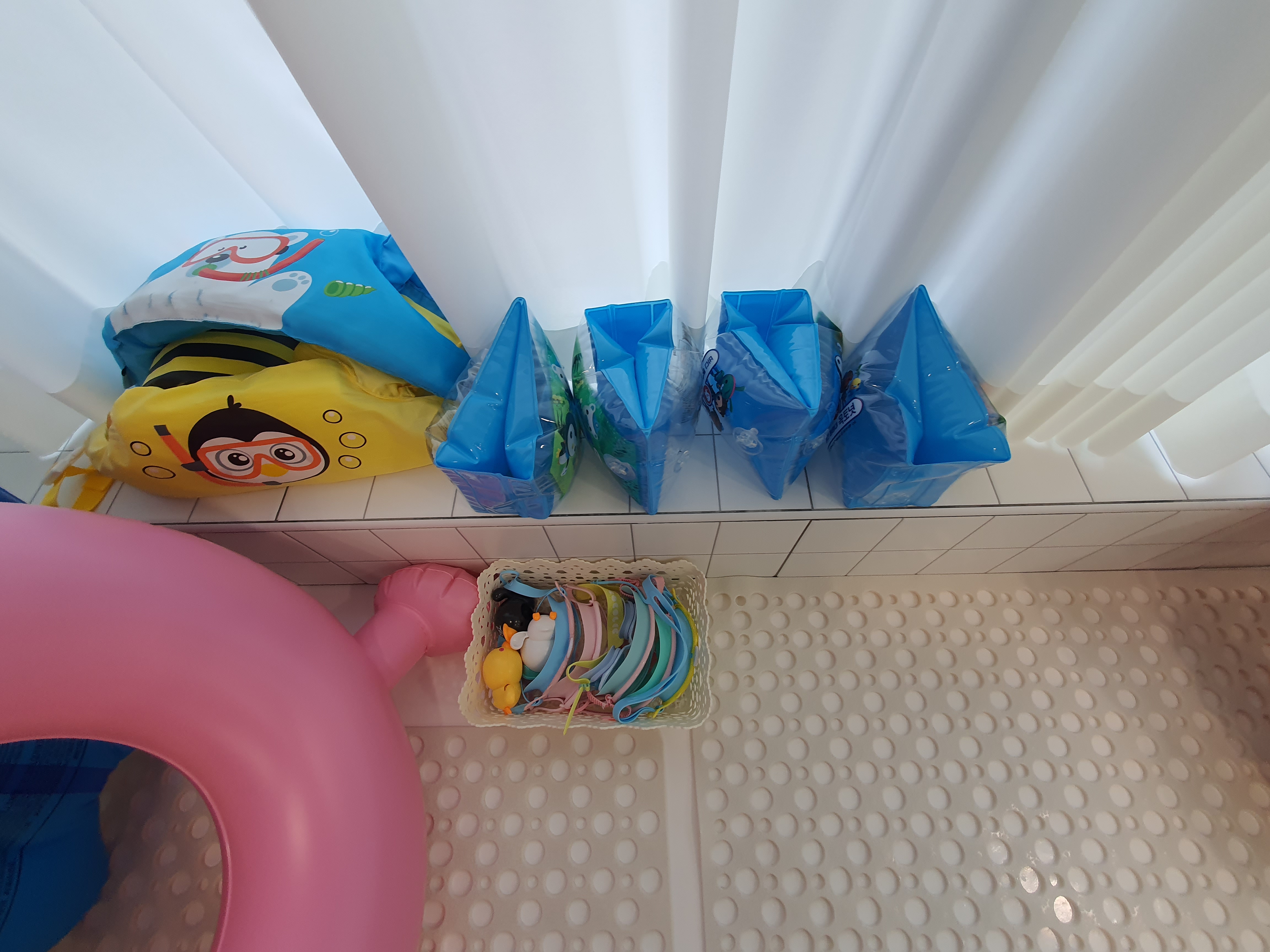 암링, 구명조끼, 물안경, 물놀이 장난감도 있고